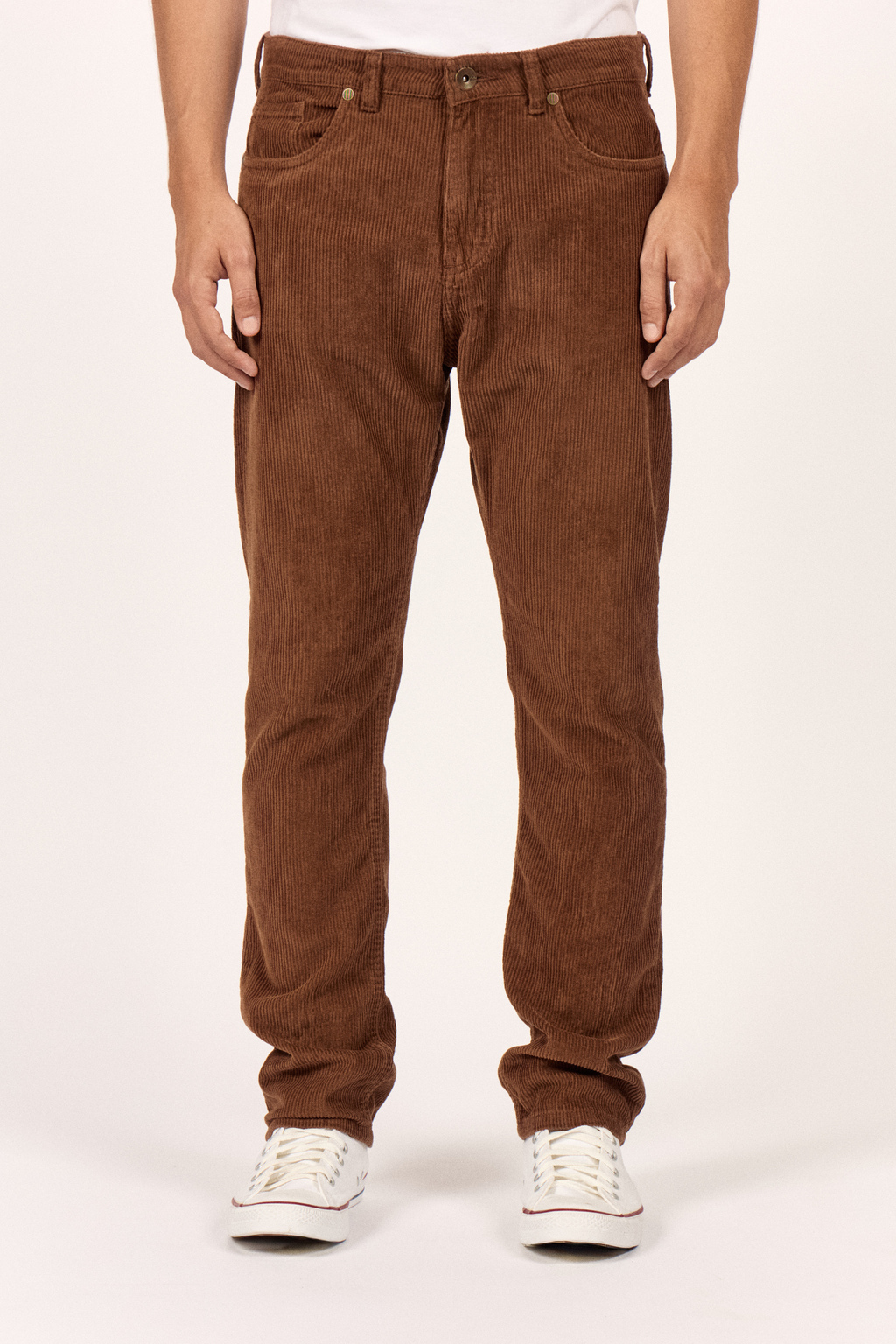 Pantalón straight de corderoy, tiro medio. Leg opening 19.5cm. Tiene identificacion de marca en espalda. Tejido rigido.